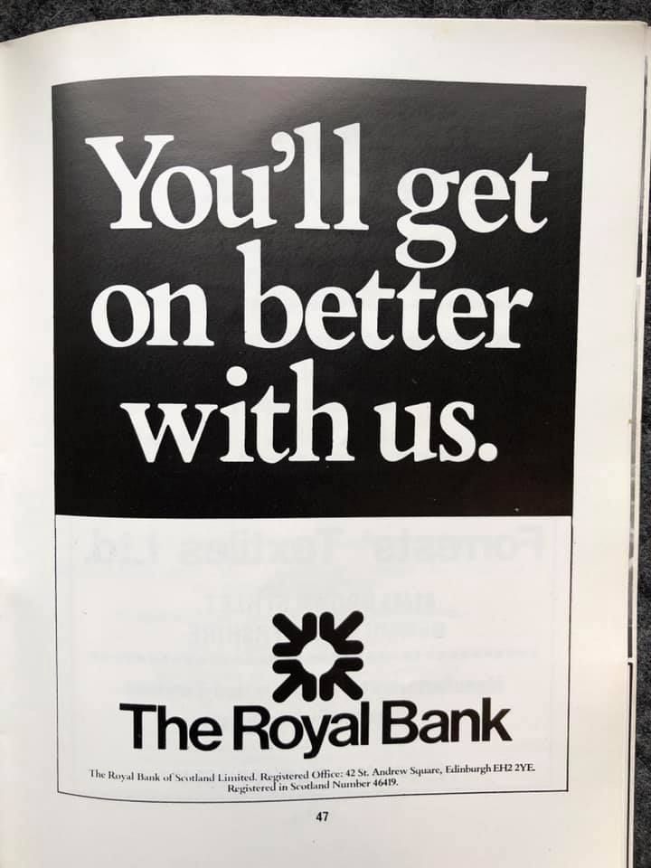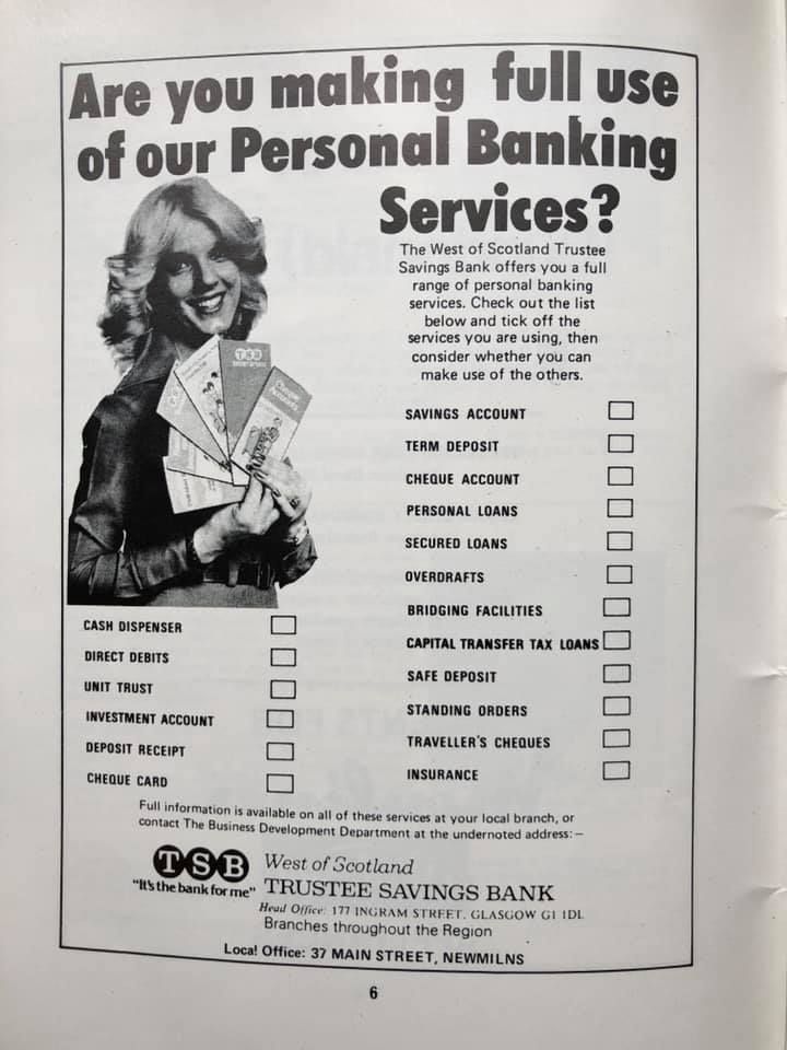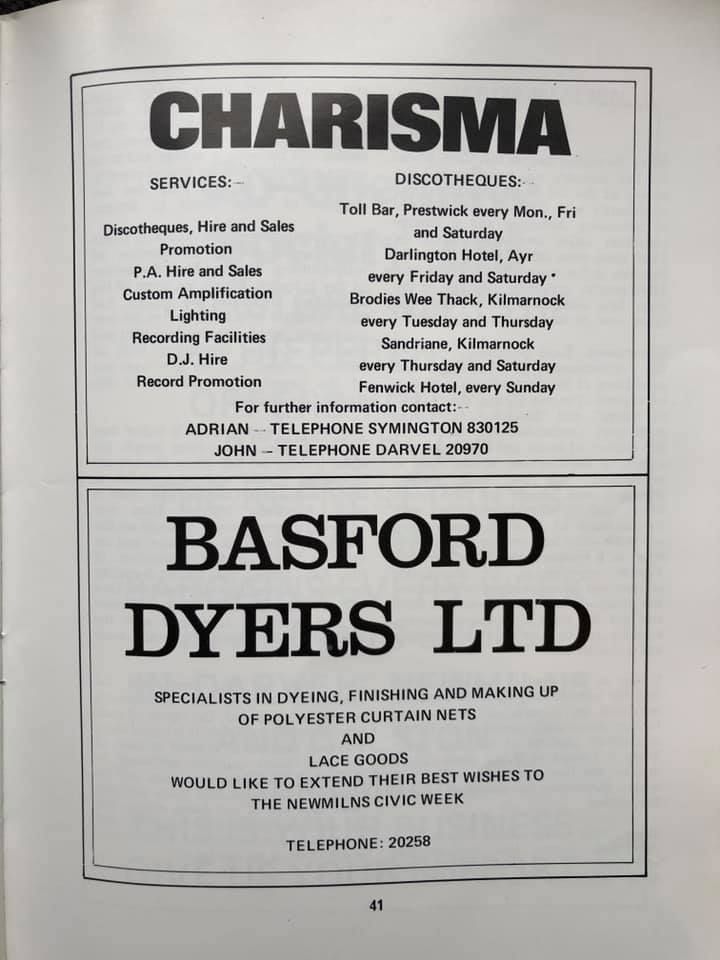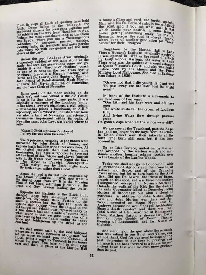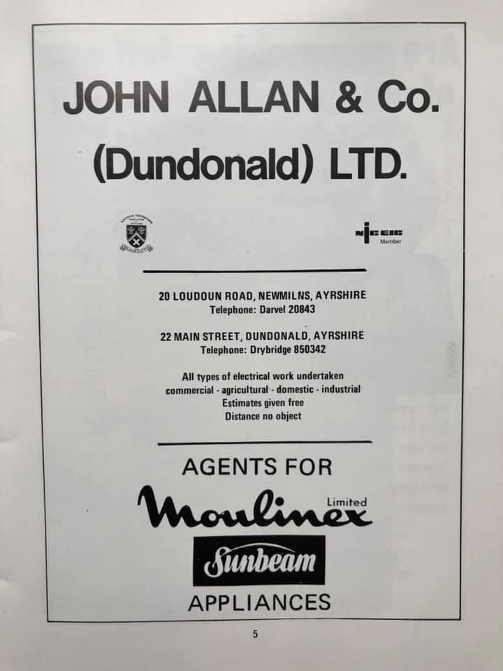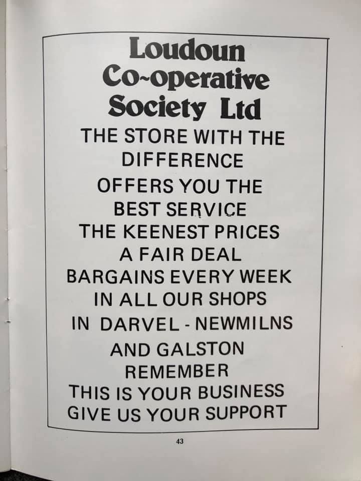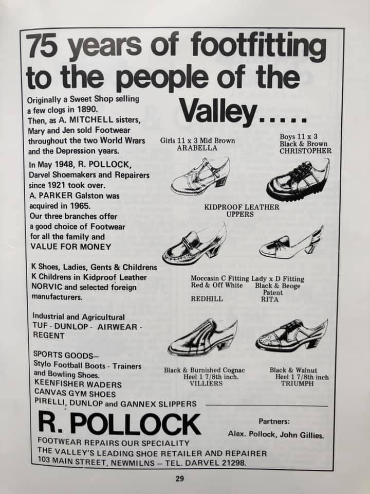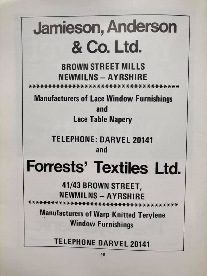 Some interesting adverts for local businesses including the Covenanters Hotel, Gilmours Dairy, Wm C. Beggs (Ronald-Bakers), R. Pollock Shoe Shop, Vesuvius Crucible, Weight & Leitch and Adam Wylie & Son - remember them?.